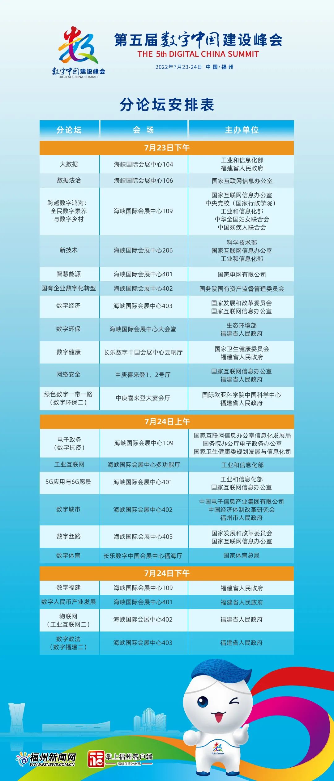 十个国家部委参与主办、超三百名重要嘉宾、超百个主旨演讲、超万人报名参会、预计将有近千万网上直播阅读量......7月23日至24日,第五届数字中国建设峰会分论坛将在福州举行。