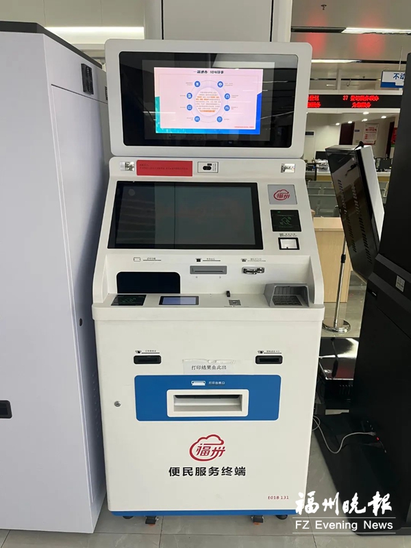 “e福州”便民服务终端上,可为企业、群众提供自助办理公安、医保、社保、公积金、不动产、交通局、市民卡等部门共96项便民服务事项。