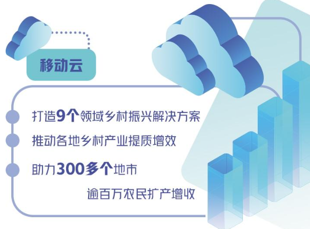 据介绍,围绕惠民、兴业、治理等方面,移动云已打造了9个领域乡村振兴解决方案,推动各地的乡村产业提质增效,助力300多个地市逾百万农民扩产增收。