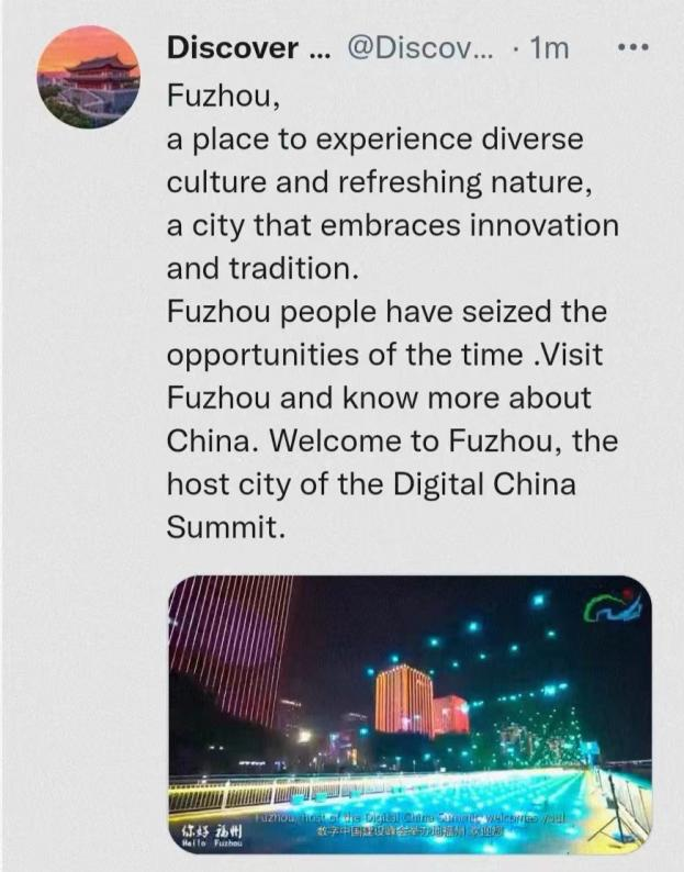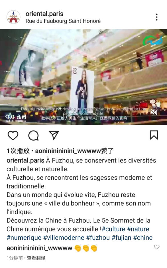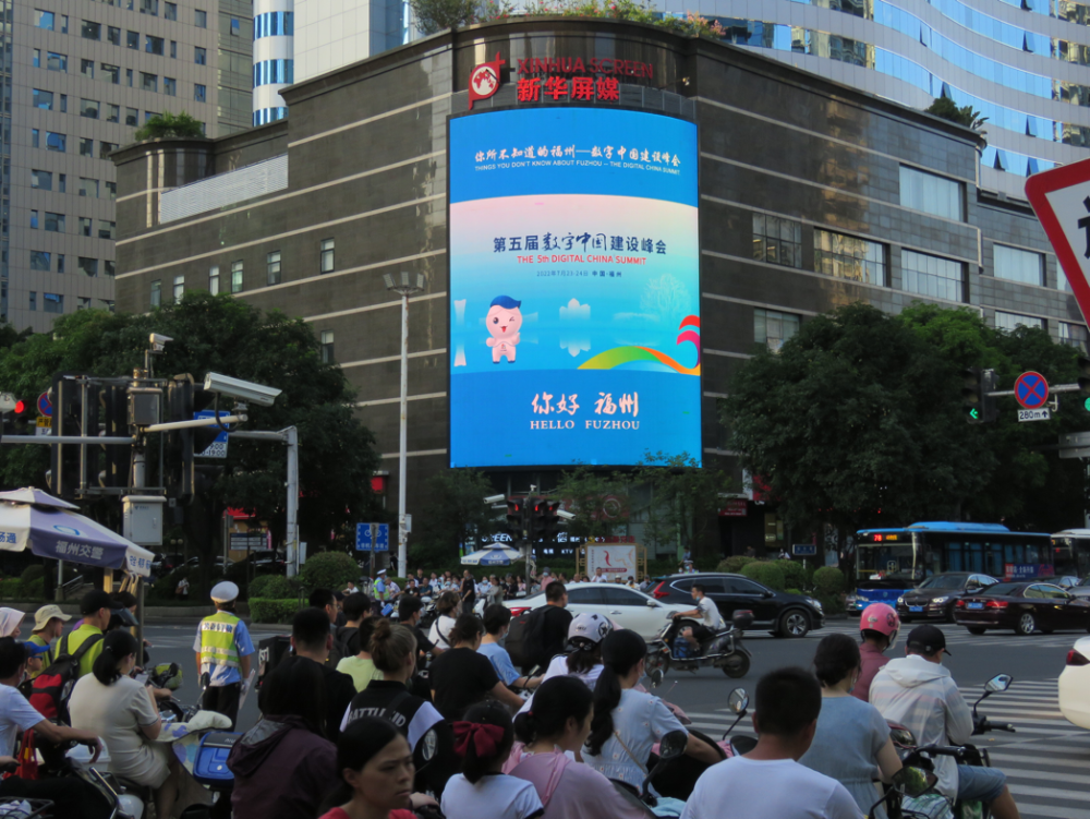 第五届数字中国建设峰会开幕当天,该条宣传片还陆续亮相北京、上海、广州、深圳、成都、福州6座国内城市的户外大屏,并通过“巴黎东方中心”“发现福建”“发现福州”等海外社交媒体账号、“新华屏媒”“新华联播网”等新华社旗下新媒体账号进行线上展播。