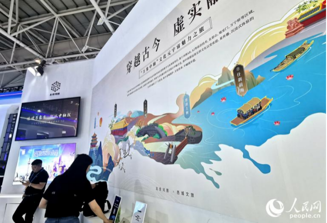 “我们对北京中轴线的场景进行了复刻,构筑了中轴线元宇宙,如果游客观光北京中轴线上的打卡点,用手机扫描眼前的景色,就会出现现实与虚拟交织的场景,仿佛穿越古今,置身于千百年前的时空。”北京河图公司工作人员陈颂在展会现场介绍说。