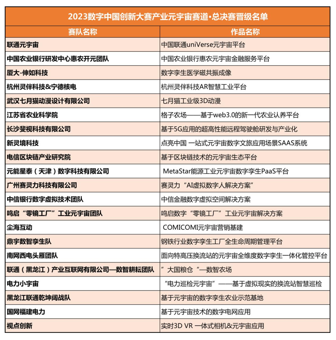 产业元宇宙赛道总决赛晋级名单