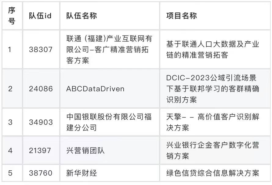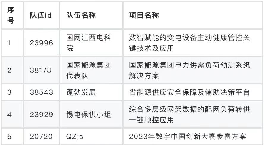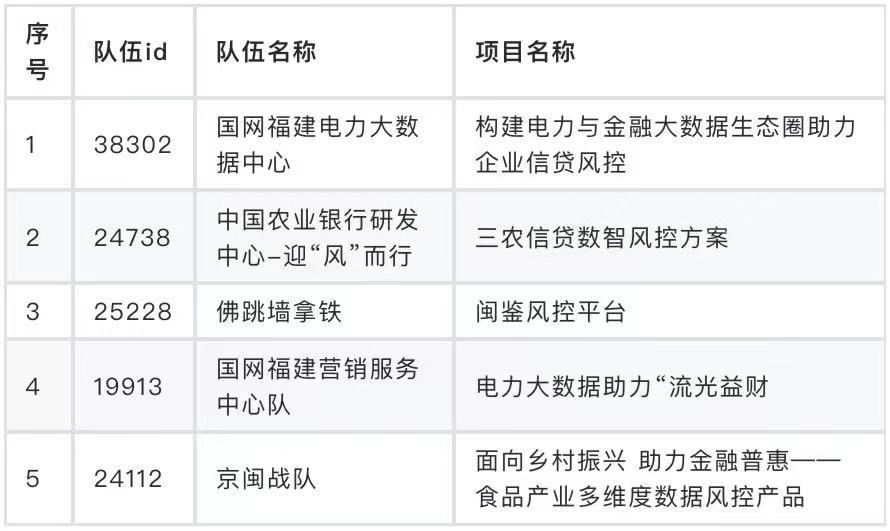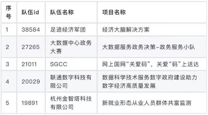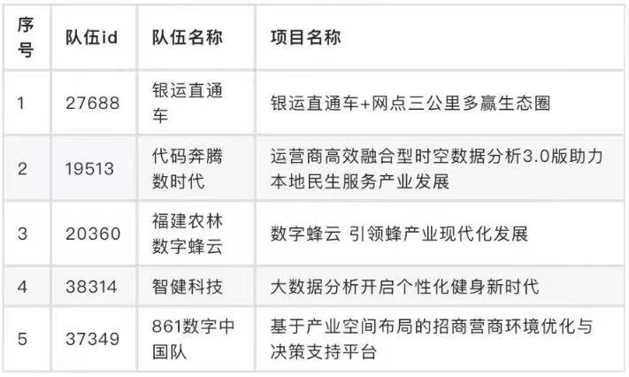 数据开发赛道总决赛晋级名单