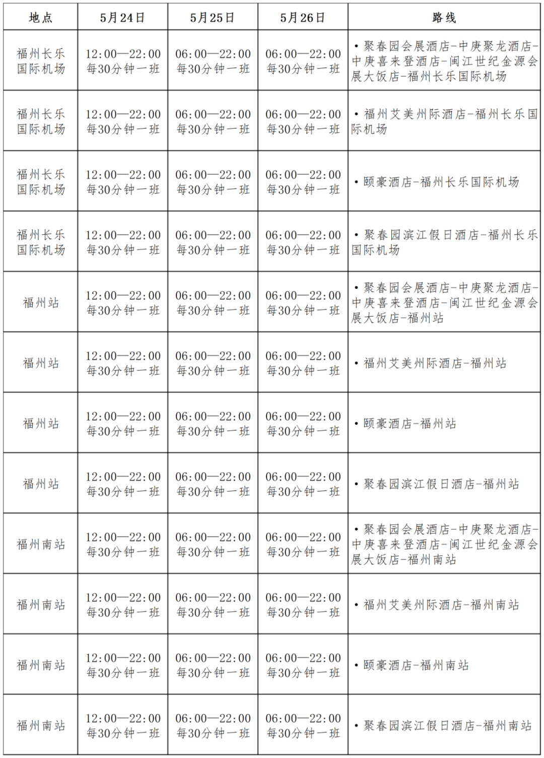 在福州长乐国际机场、福州站、福州南站,将为参会嘉宾安排接机/站班车服务。届时,工作人员将在抵达口与出站口手举峰会主视觉的接机/站牌恭候,敬请留意。