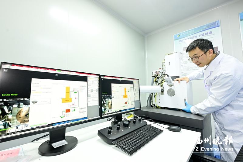 闽都创新实验室内,科研人员操控钨灯丝扫描电子显微镜。