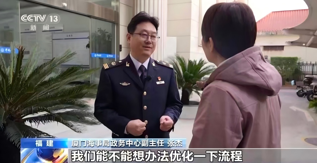 厦门海事局政务中心副主任 张杰:原来在我们海事办完船舶所有权证书,然后再去船检办船检,然后再拿着船检证书过来,我们这边办国籍证书,最后办完之后再去水运那边办营运证。这么多本证书的办理,虽然都是法律法规跟国际公约的要求,我们能不能想办法优化一下流程。一次研讨会上大家提出了这个问题,能不能想办法一起来解决,结果大家都很有意愿,大家都很有想法说我们厦门能不能先闯一条路出来。