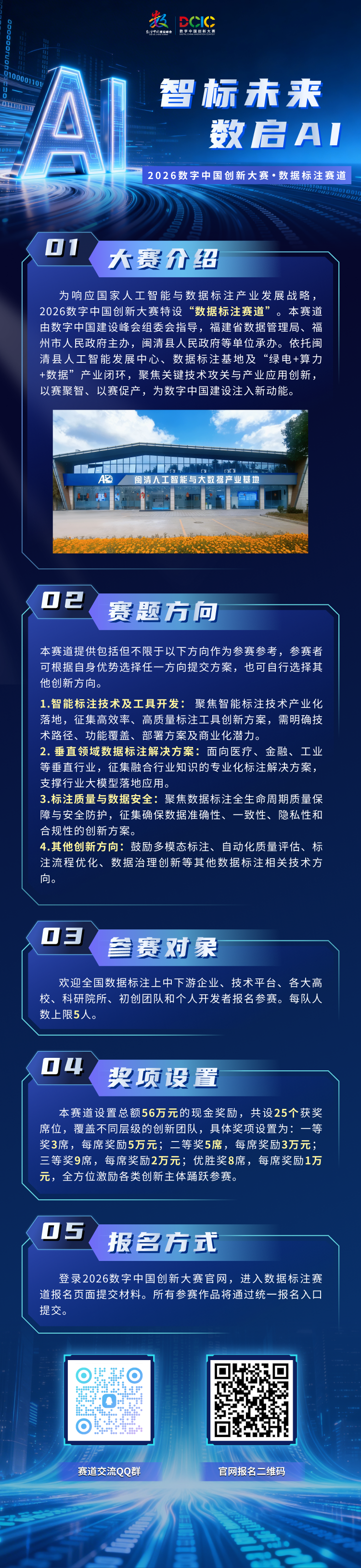 本次赛事依托闽清县坚实的数据标注产业基础,打破传统赛事“纸上谈兵”的局限,为参赛团队提供实打实的应用场景与成果落地通道,真正实现以赛促研、以赛促产。早在2025年10月,闽清县就正式揭牌成立福建省首个人工智能发展中心,同步构建起集研发实验、硬件制造、数据标注、IDC数据存储及AI智能体开发于一体的综合性产业创新平台,全力打造全省规模最大的数据标注基地。经过深耕布局,当地已集聚一批数据标注领域优质骨干企业,业务覆盖多模态数据标注、全流程质量管控、数据安全防护等核心细分领域,形成了完善的产业生态链条。成熟的产业配套、丰富的实操场景、专业的行业资源,将全程为赛事保驾护航,让参赛团队的创新方案能够对接真实产业需求,切实打通从技术创新到产业落地的最后一公里。
