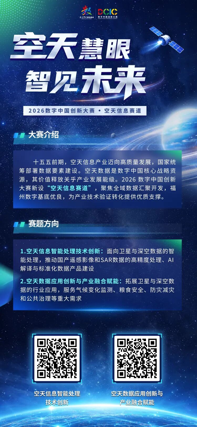 在数据要素重塑经济发展形态、空天信息技术跃升为数字经济核心基础设施的时代浪潮下,2026数字中国创新大赛顺势而为,首次增设空天信息赛道。