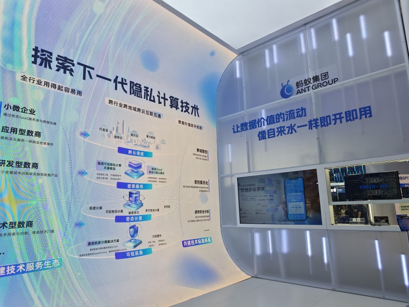 “让数据价值的流动像自来水一样即开即用。”蚂蚁集团展位的墙上,这句话让人影响深刻。它就是蚂蚁集团近年来将数据要素技术广泛落地在农村金融、公共服务、新能源产业等领域的真实写照。