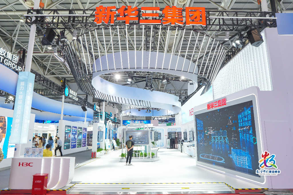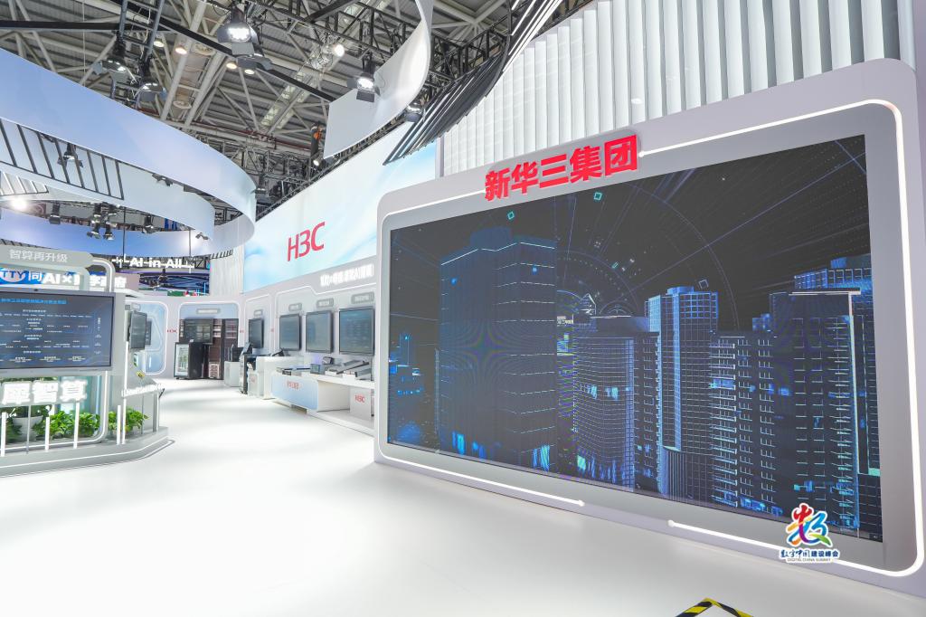 在第八届数字中国建设峰会企业展区,紫光股份旗下新华三集团以“算力×联接,引领AI新时代”为主题亮相展会,带来全栈技术能力和创新成果,赋能数字中国建设。