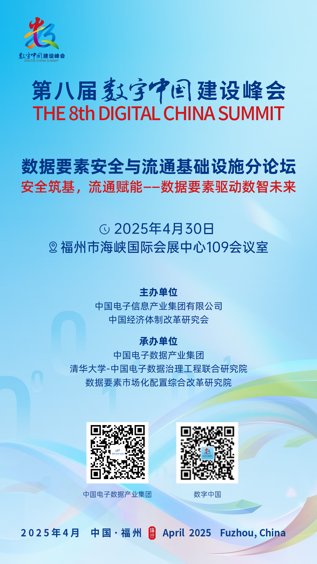 峰会期间,由中国电子信息产业集团有限公司、中国经济体制改革研究会主办,中国电子数据产业集团、清华大学-中国电子数据治理工程联合研究院、数据要素市场化配置综合改革研究院共同承办的数据要素安全与流通基础设施分论坛将于4月30日在福州市海峡国际会展中心举行。