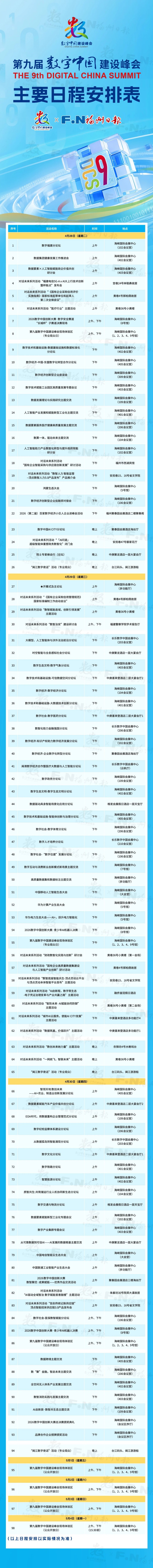 第九届数字中国建设峰会将于4月29日至30日在福建省福州市举办。50余场对话交流活动、数字中国创新大赛、现场体验区、100余场特色活动……你是不是已经迫不及待了呢?