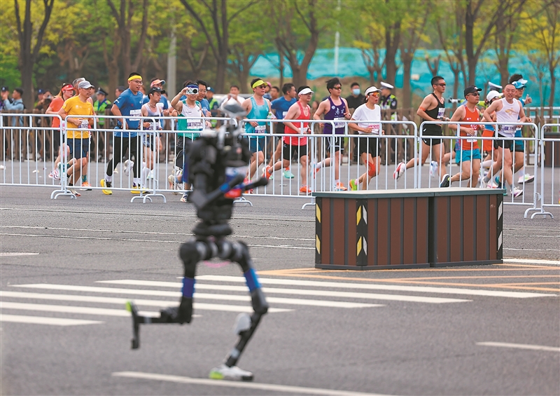 在长达21.0975公里的赛道上,100余台人形机器人与万余名人类跑者一同冲出起跑线。最终,一台名叫“闪电”的机器人以50分26秒的净时成绩夺得了机器人组冠军,比人类男子半马世界纪录快了6分多钟。