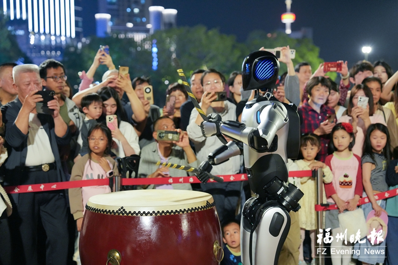 福州五一广场的路演将持续到4月21日晚。夜幕降临,机器人随着音乐节奏舞动,鼓槌落下的每一次重击,都像是在敲响未来的大门。这些钢铁舞者不仅赢得了阵阵掌声,更见证了一座城市在科技创新道路上的坚实步伐。(记者 江海/文 包华/摄)